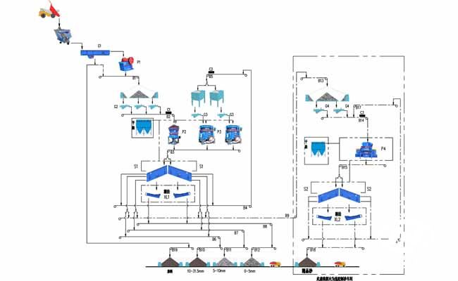 2,在需要更細粒度的情況下,可將40 mm以下的石料送入砂機,用圓形振動篩對成品進行篩分,經帶式輸送機輸送洗砂機清洗后,可將成品區放入成品區。石場生產線成套設備配置主要由破碎機、制砂機、給料機、篩分機、洗砂機等組成,各設備與中間的帶式輸送機相連。全線運行,砂石集料顆粒形態優良、均勻,成品可應用于建筑、公路、電力、水利等領域。