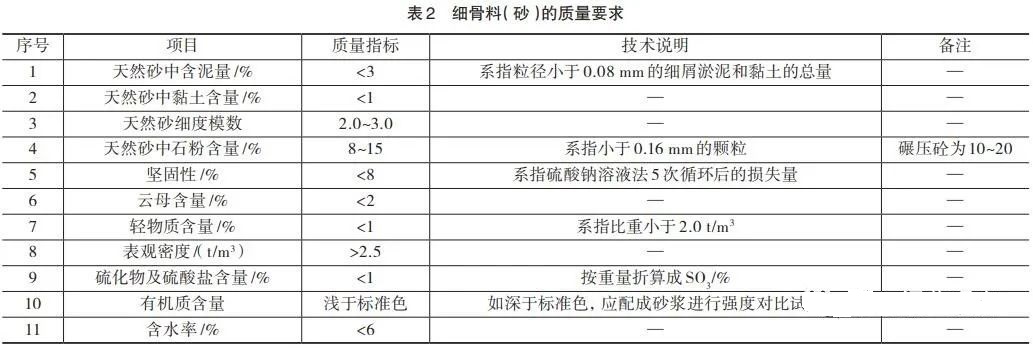 質(zhì)量控制主要控制粗骨料的超遜徑和細骨料的石粉含量及細度模數(shù),混凝土用天然砂石骨料加工,質(zhì)量要求詳見表1和表2。