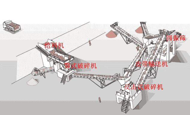 如石料規格尺寸較大,可選用顎式破碎機作為一級破碎,當石料規格尺寸較嚴,需要由一定級配的石料組成時,則需要選用聯合破碎篩分設備,如由顎式破碎機和圓錐或反擊式、錘式破碎機組成的聯合破碎設備,并與由一定尺寸規格的篩分設備配套組成。