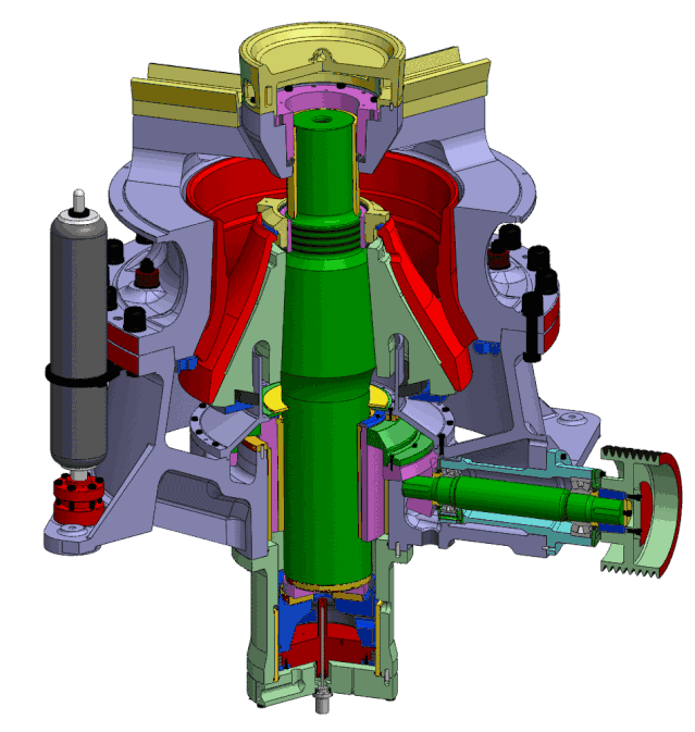 ▲單缸(上)和多缸(下)液壓圓錐破動態圖